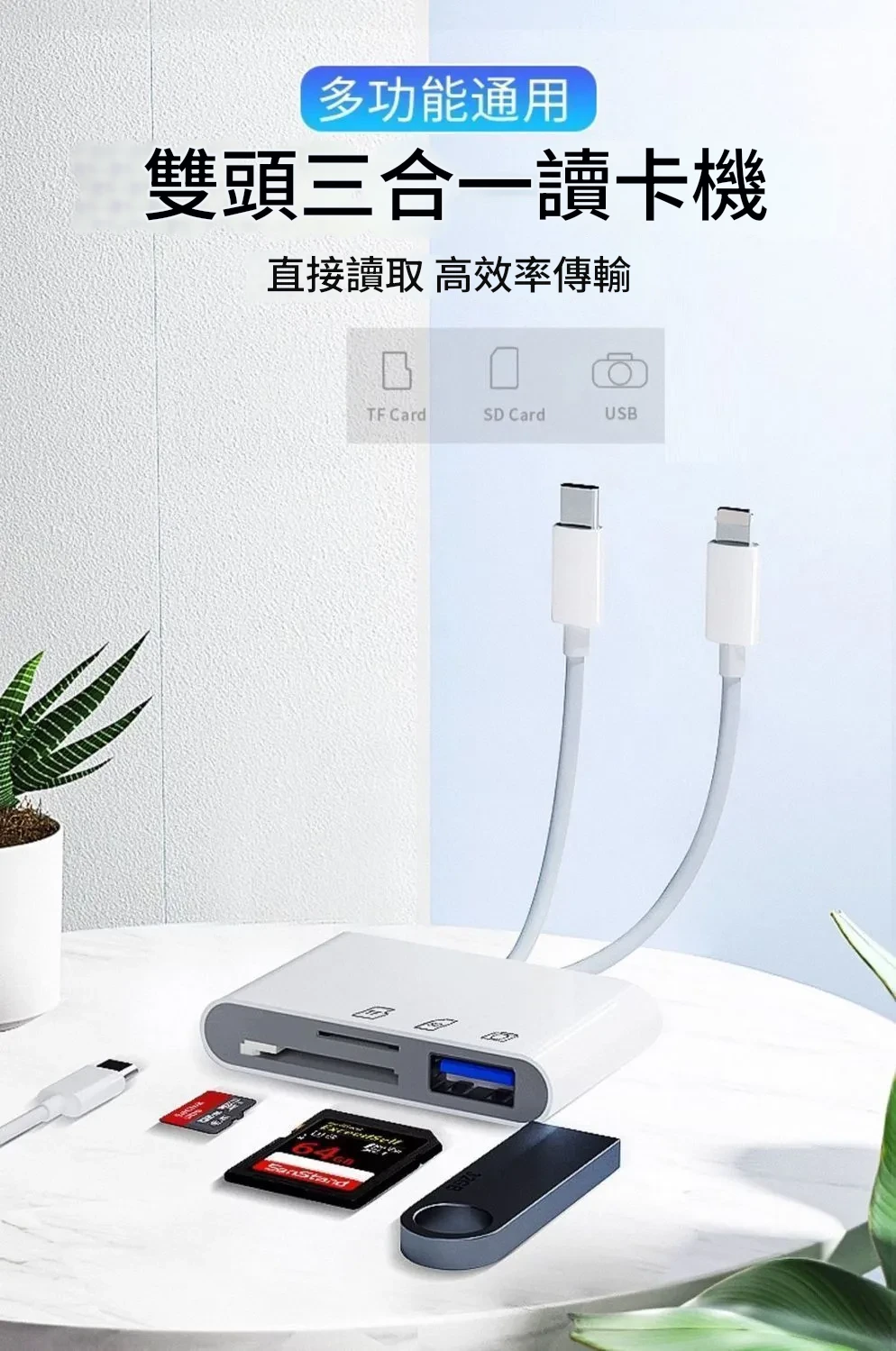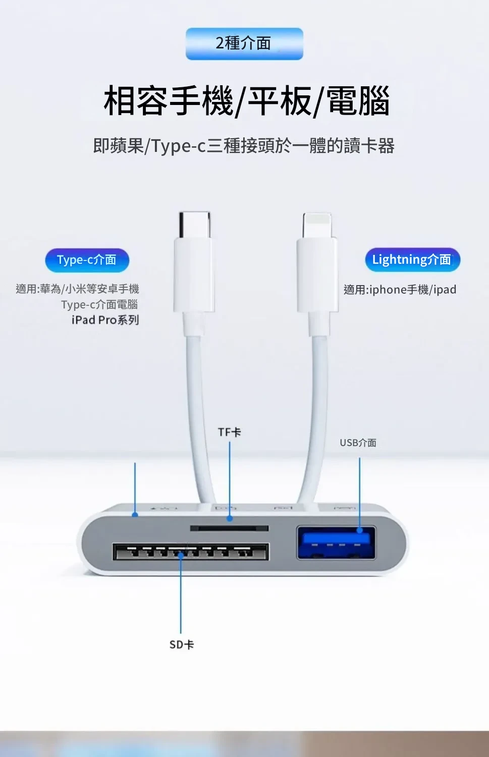 雙頭款三合一讀卡器